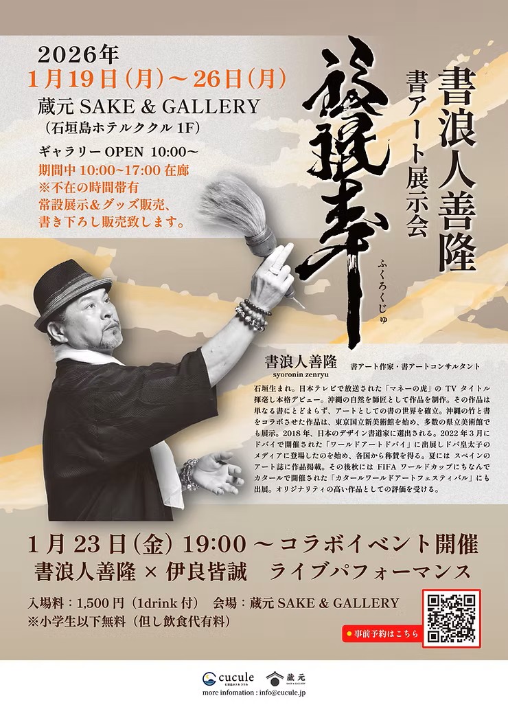 1月19日(月)〜26日(月)まで、蔵元SAKE&GALLERY(石垣島ホテルククル1F)にて