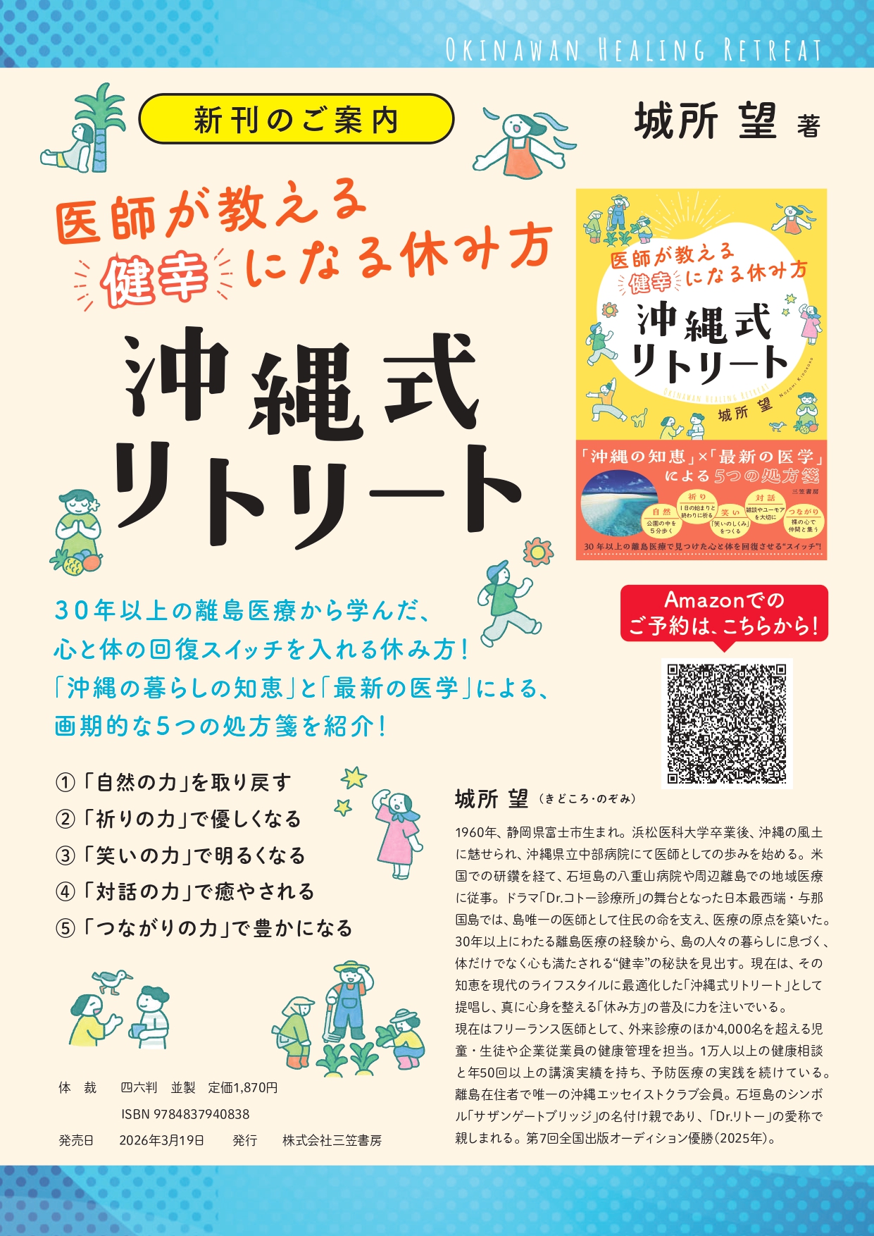 2026年3月19日、初の書籍を出版:「医師が教える『健幸』になる休み方:沖縄式リトリート」(三笠書房)