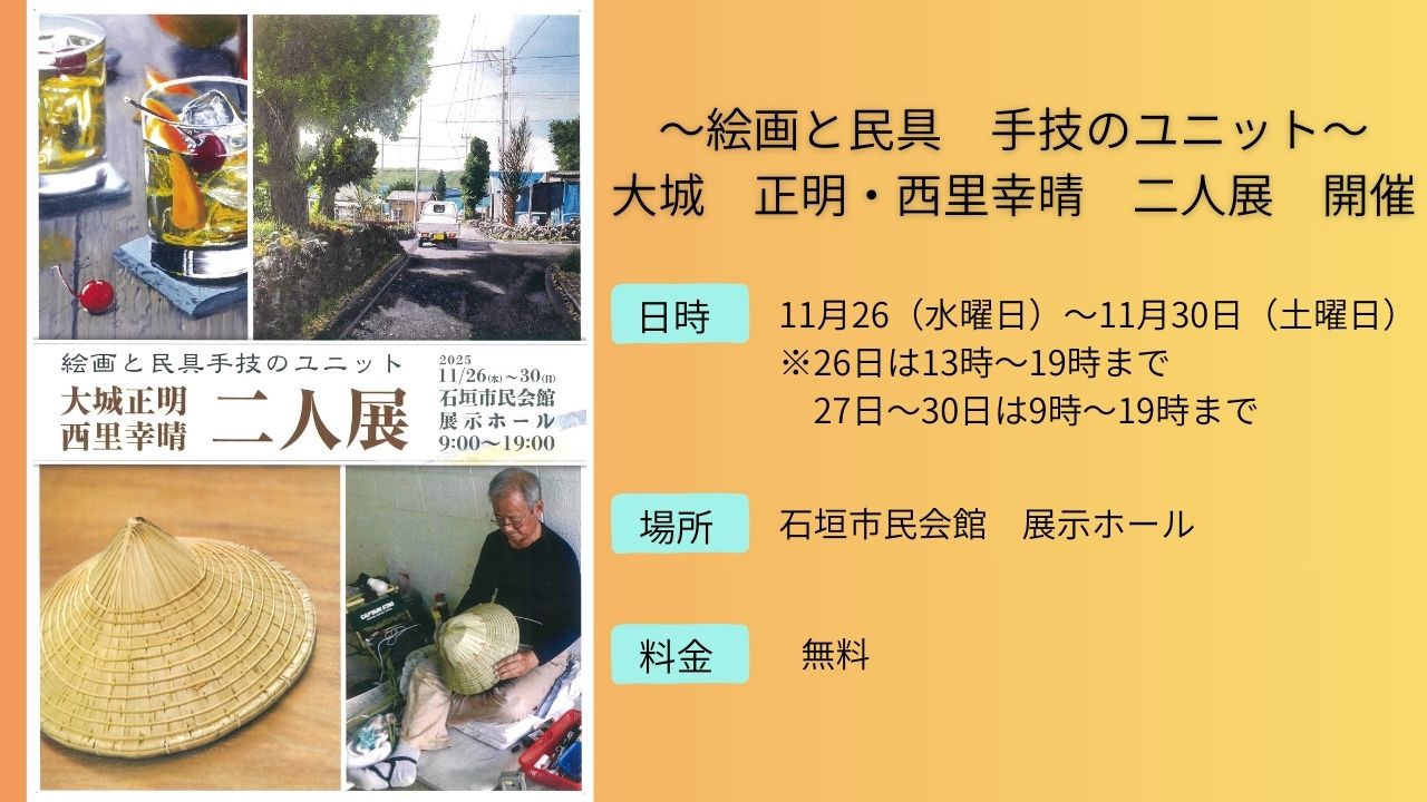 大城正明さん・西里幸晴さん 二人展が、11月26日~30日の期間