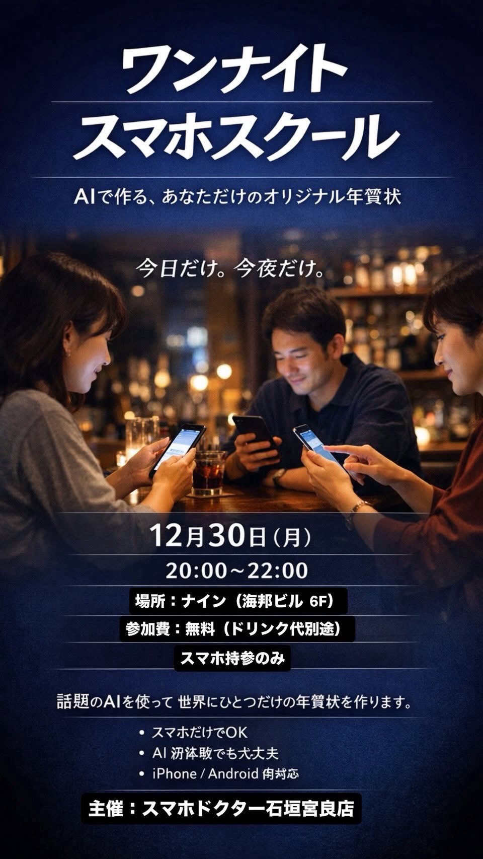 「ワンナイトスマホスクール」が行われます。AIを使って世界にひとつだけの年賀状を